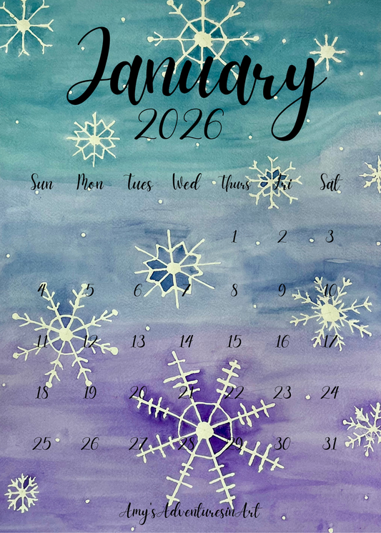 Each calendar image was designed and painted by Amy using watercolor paints. They are printed on high quality archival paper and cut to fit onto the rustic boards. Rustic boards were handcrafted and stained by John. There are 3 choices of stains for the boards. The boards can be hung (using picture hanger already attached) or placed on desk (with dowel rod and hole, already placed) and the calendar held in place with the bulldog clip on front.