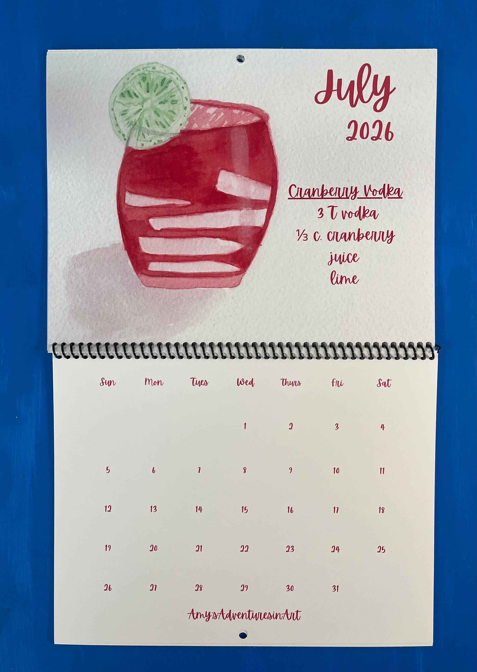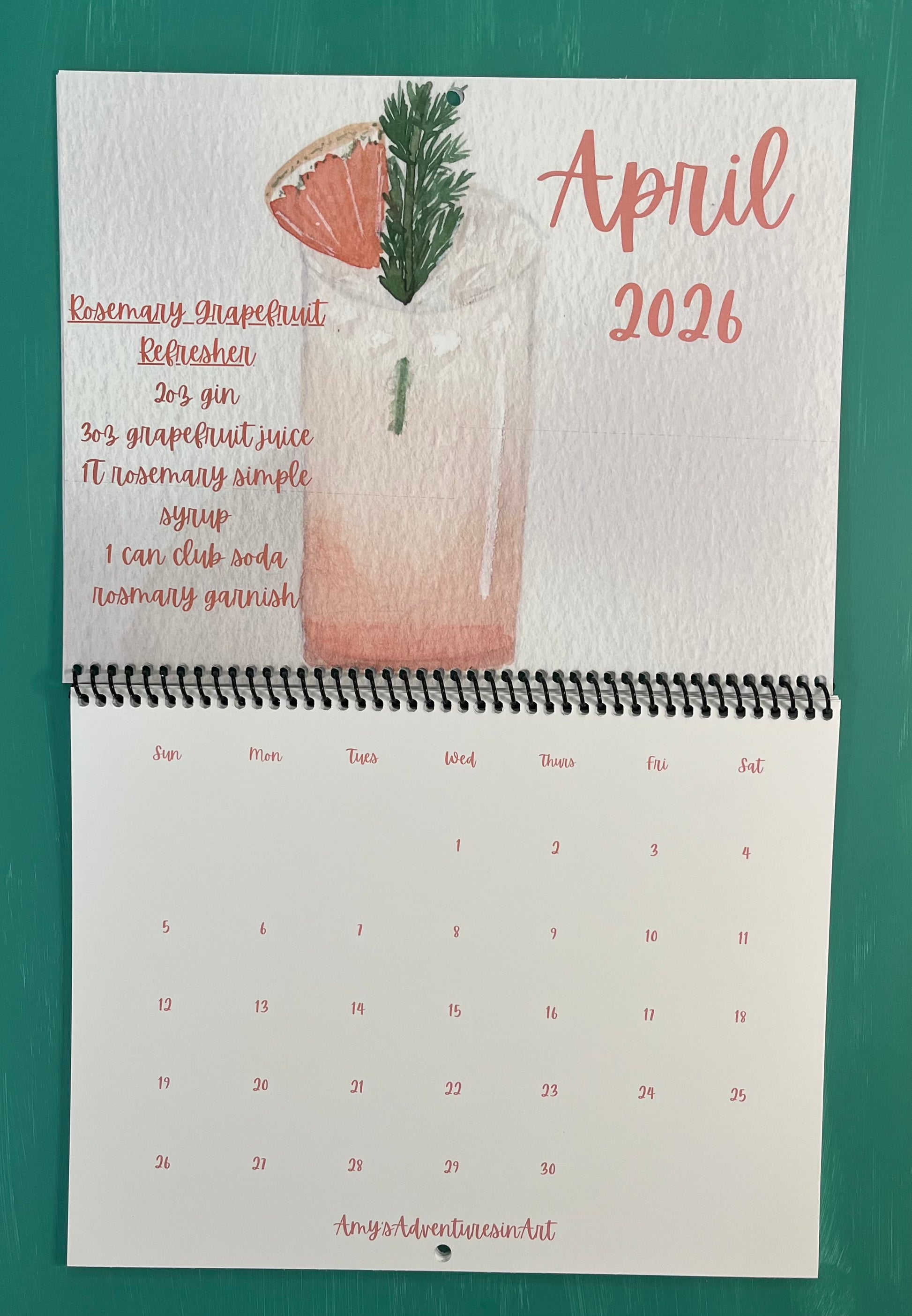Brighten your year with this 8½x11 Wall Calendar featuring vivid watercolor illustrations of delightful cocktails. Each month showcases a colorful recipe paired with clear date displays, making it both functional and fun. Perfect for cocktail lovers who enjoy art and a splash of creativity in their daily routine!